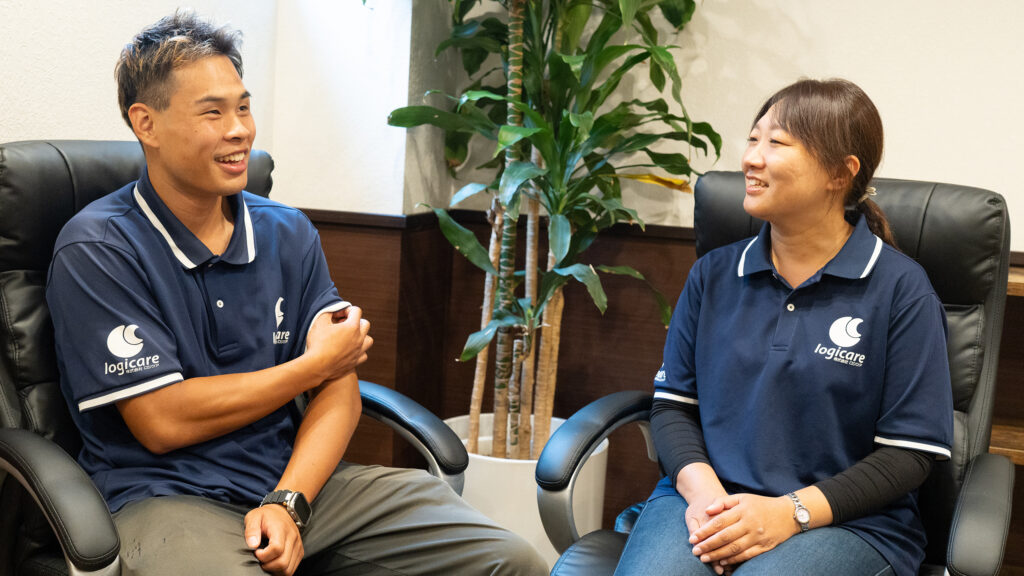 本社の新卒研修を見学したときに和田くんを初めて見かけました。 12〜3人の研修生の中で男性は2人だけ。特に背の高い和田くんはパッとすぐ目についたのを覚えています。正直「介護できるのかな」と思ったけれど…